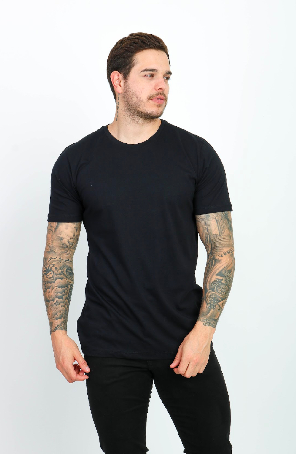 Camiseta básica masculina preta, confeccionada em algodão pima, conhecida pela maciez, durabilidade e toque premium.Modelo clássico e confortável, ideal para um estilo casual e sofisticado.